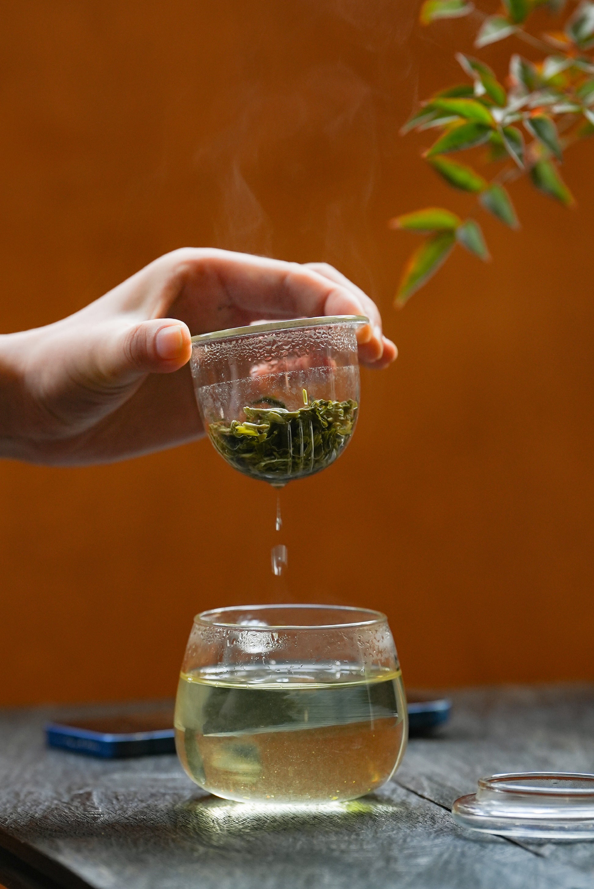 Spürbar weniger Anspannung in 60 Minuten mit einer Tasse Bio-Grüntee durch eine jahrhundertealte Technik der chinesischen Teezeremonie.