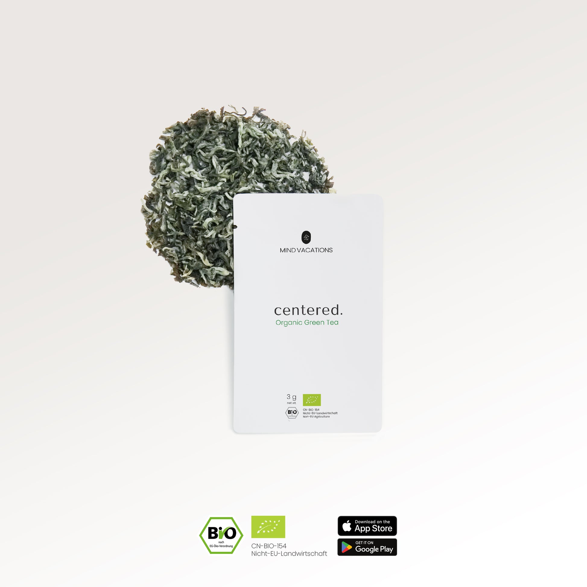 CENTERED. vereint handgepflückte, ganze Grünteeblätter mit einem sanft-blumigen Aroma und feiner Frische. Und...